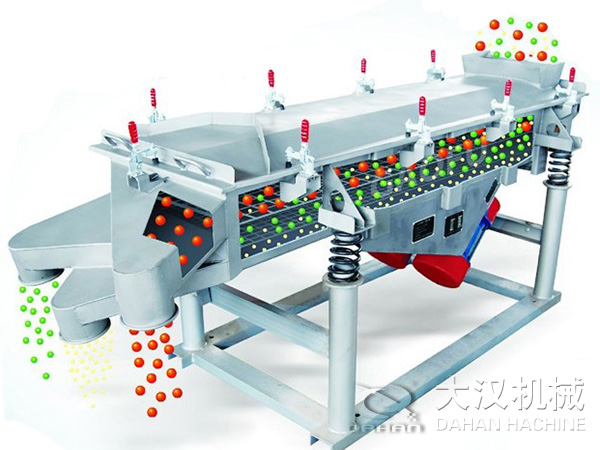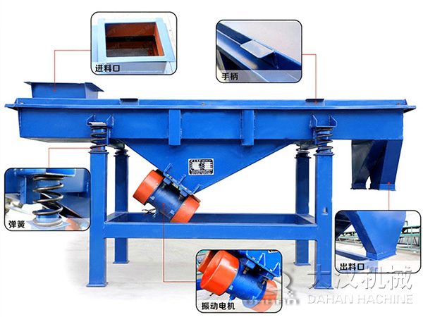 直線振動(dòng)篩,簡稱直線篩,是一種運(yùn)動(dòng)軌跡為直線的中、細(xì)物料篩分設(shè)備,廣泛用于選煤、選礦、電力、制糖、制鹽、化工、磨料、耐材、食品等行業(yè),對(duì)中、細(xì)粒度物料進(jìn)行干、濕式篩分或脫水、脫介、脫泥作業(yè)。直線振動(dòng)篩利用振動(dòng)電機(jī)激振作為振動(dòng)源,使物料在篩網(wǎng)上被拋起,同時(shí)向前作直線運(yùn)動(dòng),物料從給料機(jī)均勻地進(jìn)入篩分機(jī)的進(jìn)料口,通過多層篩網(wǎng)產(chǎn)生數(shù)種規(guī)格的篩上物、篩下物、分別從各自的出口排出。具有耗能低、產(chǎn)量高、結(jié)構(gòu)簡單、易維修、全封閉結(jié)構(gòu),無粉塵溢散,自動(dòng)排料,更適合于流水線作業(yè)。