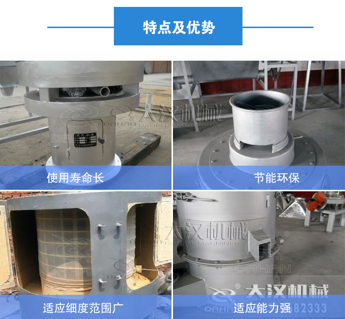 5、:噪音低,適合連續(xù)作業(yè)且耗能少,篩分程序在負壓半循環(huán)狀態(tài)下進行,無粉塵污染;