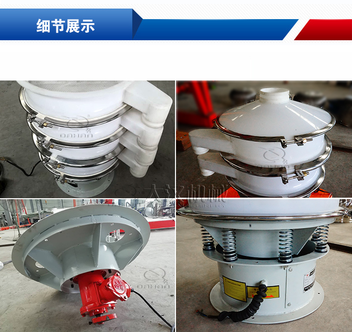 化工振動(dòng)篩是特殊性、高粘度、細(xì)粒物料篩分過濾設(shè)備,又叫化工耐腐蝕振動(dòng)篩,主要用于篩分各種化工物料,細(xì)粉、微粉、及干、濕物料等,適用于酸性、堿性、油性等化工生產(chǎn)。大漢化工振動(dòng)篩篩分細(xì)至500目或0.028mm,過濾小可至5微米。可裝一至五層篩網(wǎng),能同時(shí)對二至六個(gè)等級的物料進(jìn)行分選或過濾。