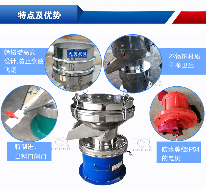 3、篩格增高式設計,防止?jié){液飛濺,大觀察口,易于觀察篩面;