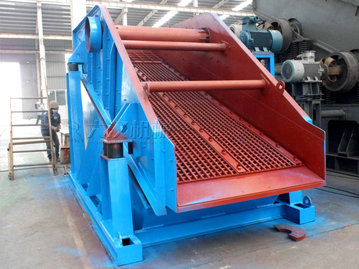 尾礦干排篩由篩箱、支承裝置、電機(jī)架、振動(dòng)器、萬(wàn)向傳動(dòng)軸、膠帶聯(lián)軸器、電機(jī)等部件組成,入料尾礦由給料箱均勻給入篩子入料口處,首先在與水平成45度安裝泄水篩板處脫除約1/3左右的水分,進(jìn)入平面篩板與傾斜篩板的結(jié)合部后,出現(xiàn)物料的積聚,煤泥顆粒靠重力沉降,開(kāi)始形成較薄的濾層,濾層又阻止其余顆粒透篩,使得濾層逐漸增厚。未能透篩的水在濾層上部形成水池,由于此處濾層較薄,水分陸續(xù)在強(qiáng)烈的運(yùn)動(dòng)下逐漸脫去,由于高頻低振幅的振動(dòng)狀態(tài),使得形成濾層的尾礦振的越來(lái)越密實(shí),至排料口處,物料形成濾餅狀,尾礦中的水分除從篩面脫除一部分外,其余由于毛細(xì)作用浮現(xiàn)于料層表面,由于篩面負(fù)傾角安裝,水不會(huì)從排料口溢出,表面水會(huì)流向結(jié)合部水池。