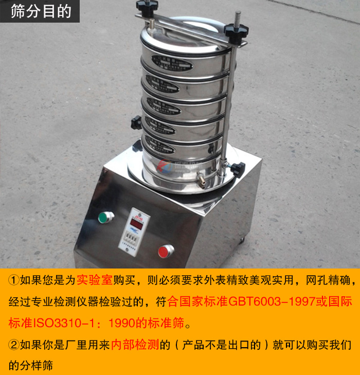 如果你是廠里用來(lái)內(nèi)部檢測(cè)的(產(chǎn)品不是出口的)就可以購(gòu)買我們的分樣篩。標(biāo)準(zhǔn)篩和分樣篩的主要區(qū)別就在于網(wǎng)孔是不是符合國(guó)家標(biāo)準(zhǔn)。