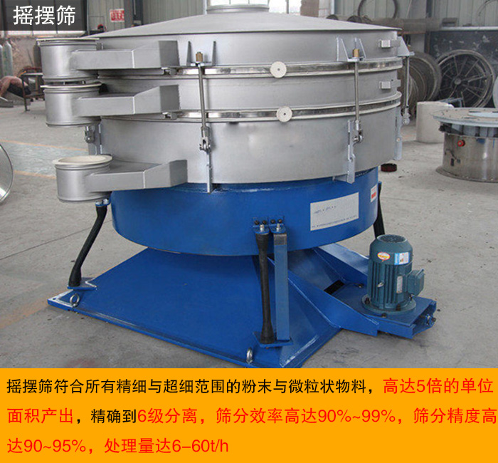搖擺篩符合所有精細(xì)與超細(xì)范圍的粉末與微粒狀物料,高達(dá)5倍的單位面積產(chǎn)出,6級分離,篩分效率高達(dá)90%~99%,篩分精度高達(dá)90~95%,處理量達(dá)6-60t/h,另外,新鄉(xiāng)大漢搖擺篩配備有橡膠球、超聲波等高效清網(wǎng)裝置,篩孔不易堵塞。大漢還有篩分效率高、處理量大的高效篩選設(shè)備—方形搖擺篩,其產(chǎn)量可高達(dá)100t/h。