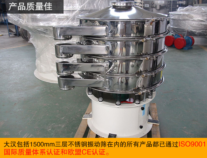 大漢生產(chǎn)出來的每一臺不銹鋼振動篩均采用先進的生產(chǎn)工藝、精湛的焊接工藝制造而成,大漢從選材的精良,到技術(shù)的革新,再到做工的精湛,再到成品的嚴(yán)格檢查,對每一環(huán)節(jié)都牢牢監(jiān)控,。目前,大漢包括1500mm三層不銹鋼振動篩在內(nèi)的所有產(chǎn)品都已通過ISO9001國際質(zhì)量體系認(rèn)證和歐盟CE認(rèn)證。