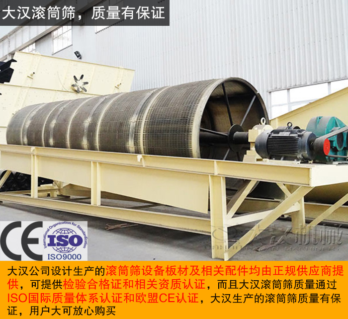 用戶(hù)再選購(gòu)滾筒篩時(shí)注重的就是質(zhì)量,因?yàn)闈L筒篩質(zhì)量的好壞直接影響成品物料的質(zhì)量。大漢是一家擁有20多年生產(chǎn)經(jīng)驗(yàn)的振動(dòng)篩生產(chǎn)廠家,一直致力于振動(dòng)篩分設(shè)備的設(shè)計(jì)、研發(fā)工作,從設(shè)計(jì)到調(diào)試全程監(jiān)控,確保設(shè)備高質(zhì)量的同時(shí)又能符合用戶(hù)的生產(chǎn)要求。大漢公司設(shè)計(jì)生產(chǎn)的滾筒篩設(shè)備板材及相關(guān)配件均由正規(guī)供應(yīng)商提供,可提供檢驗(yàn)合格證和相關(guān)資質(zhì)認(rèn)證,而且大漢滾筒篩質(zhì)量通過(guò)ISO國(guó)際質(zhì)量體系認(rèn)證和歐盟CE認(rèn)證,大漢生產(chǎn)的滾筒篩質(zhì)量有保證,用戶(hù)大可放心購(gòu)買(mǎi)。