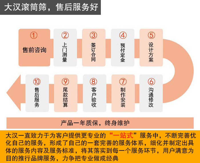 就廠家服務(wù)而言,近些年來(lái)大漢一直致力于為客戶(hù)提供更專(zhuān)業(yè)的“一站式”服務(wù)中,不斷完善優(yōu)化自己的服務(wù),形成了自己的一套完善的服務(wù)體系,細(xì)化并制定出具體的服務(wù)內(nèi)容及服務(wù)標(biāo)準(zhǔn),將其落實(shí)到每一個(gè)服務(wù)環(huán)節(jié),用戶(hù)滿(mǎn)意為目的推行品牌服務(wù),力爭(zhēng)把專(zhuān)業(yè)做成經(jīng)典。