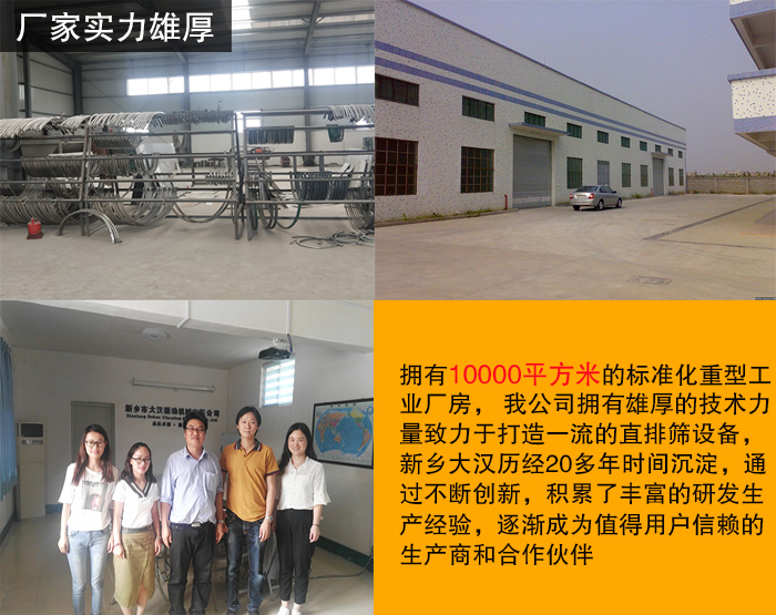 新鄉(xiāng)大漢機(jī)械是一家集科研、生產(chǎn)、銷售為一體的大型企業(yè),擁有10000平方米的標(biāo)準(zhǔn)化重型工業(yè)廠房, 我公司擁有雄厚的技術(shù)力量致力于打造的直排篩設(shè)備,新鄉(xiāng)大漢歷經(jīng)20多年時間沉淀,通過不斷,積累了豐富的研發(fā)生產(chǎn)經(jīng)驗,逐漸成為值得用戶信賴的生產(chǎn)商和合作伙伴。