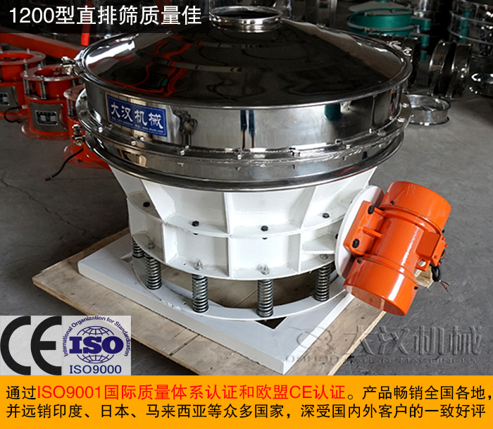 大漢1200型直排篩生產(chǎn)嚴(yán)格按照高標(biāo)準(zhǔn)執(zhí)行,該款設(shè)備通過ISO9001國際質(zhì)量體系認(rèn)證和歐盟CE認(rèn)證。產(chǎn)品暢銷全國各地,并遠(yuǎn)銷印度、日本、馬來西亞等眾多國家,深受國內(nèi)外客戶的一致好評。