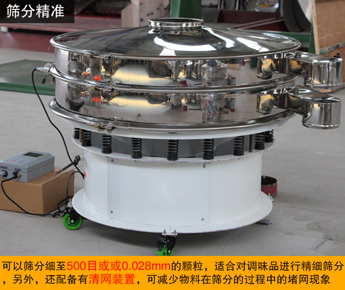 三次元振動(dòng)篩篩分物料范圍廣,可以篩分細(xì)至500目或或0.028mm的顆粒,適合對調(diào)味品進(jìn)行精細(xì)篩分,另外,還配備有清網(wǎng)裝置,可減少物料在篩分的過程中的堵網(wǎng)現(xiàn)象,極大的提高了篩機(jī)的篩分產(chǎn)量和篩分效率。