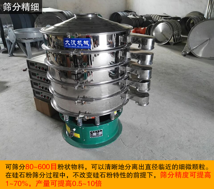 硅石粉主要用于玻璃、陶瓷、耐火材料、冶金、建筑、化工、橡膠、涂料等行業(yè),應(yīng)用較為廣泛,篩分硅石粉選擇哪種振動(dòng)篩好呢?大漢廠家推薦您使用超聲波振動(dòng)篩。