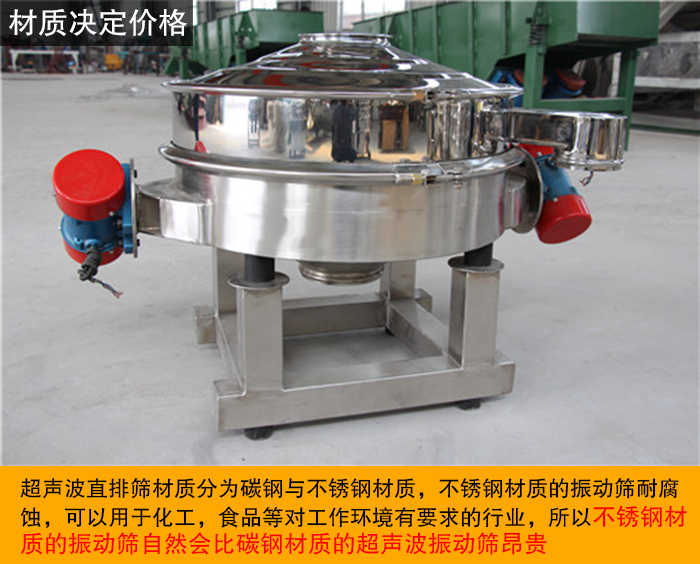 超聲波直排篩材質分為碳鋼與不銹鋼材質,不銹鋼材質的振動篩耐腐蝕,可以用于化工,食品等對工作環(huán)境有要求的行業(yè),所以不銹鋼材質的振動篩自然會比碳鋼材質的超聲波振動篩昂貴,用戶在選擇超聲波振動篩時需要根據(jù)篩分物料的特性及工作環(huán)境進行選擇。