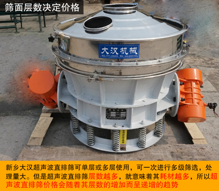 超聲波直排篩超聲波直排篩是在直排篩的基礎上加裝超聲波裝置,用于篩分較細 、易堵網(wǎng)、篩下物較多的物料篩分,其篩分精度高,篩分效率高,適用于冶金、制藥、化工、食品等多個行業(yè)。那么如果用戶想求購一臺超聲波振動篩得多少錢呢?新鄉(xiāng)大漢一臺超聲波振動篩大概在8000~25000元之間,超聲波直排篩型號不同,材質不同、篩面層數(shù)不同,所以價格也會有所波動,接下來將為您進行詳細介紹。