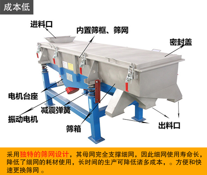 直線振動(dòng)篩作為為常見(jiàn)的一種振動(dòng)篩,采用獨(dú)特的篩網(wǎng)設(shè)計(jì),其母網(wǎng)完全支撐細(xì)網(wǎng),因此細(xì)網(wǎng)使用壽命長(zhǎng),降低了細(xì)網(wǎng)的耗材使用,長(zhǎng)時(shí)間的生產(chǎn)可降低諸多成本,方便和快速更換篩網(wǎng) 。