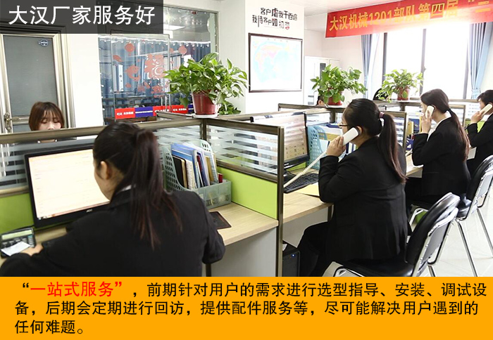 大漢始終腳踏實地地走“一站式服務(wù)'路線,前期針對用戶的需求進行選型指導、安裝、調(diào)試設(shè)備,后期會定期進行回訪,提供配件服務(wù)等,盡可能解決用戶遇到的難題,讓用戶買的安心,用的放心。