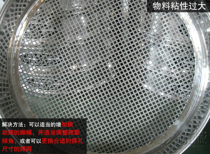 解決方法:可以適當(dāng)?shù)脑黾诱駝?dòng)篩的振幅,并適當(dāng)調(diào)整篩面傾角,或者可以更換合適的篩孔尺寸的篩網(wǎng)。
