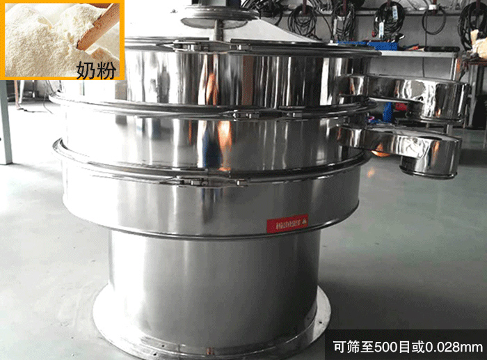 食品振動(dòng)篩可篩至500目或0.028mm,篩分精度高,非常適合全脂乳粉行業(yè)高精度的篩分需要。