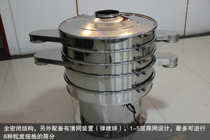 食品振動(dòng)篩采用全密閉結(jié)構(gòu),另外配備有清網(wǎng)裝置(彈跳球),1~5層篩網(wǎng)設(shè)計(jì),多可進(jìn)行6種粒度規(guī)格的篩分,可進(jìn)行連續(xù)化作業(yè),篩分效率高。