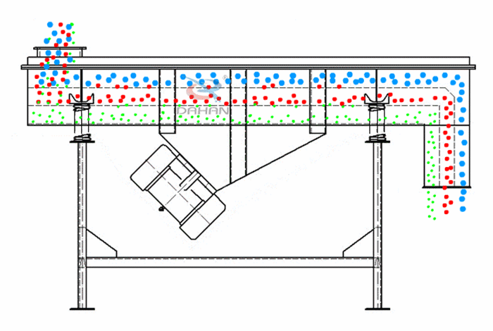 直線振動篩為雙振動電機驅(qū)動,當花生從給料機均勻地進入篩分機的進料口,在振動電機的激振力下,花生在篩面上被拋起跳躍或向前作直線運動,通過多層篩網(wǎng)篩分出數(shù)種產(chǎn)品和不合格的篩上、篩下物,分別從各自的出口排出,流入料倉或盛料筒。從而達到對物料進行篩選和分級的目的。適用于粒度在0.074—5mm,含水量小于7%,無粘性的各種干式粉狀或顆粒狀物料的篩分,給料粒度不大于10mm。