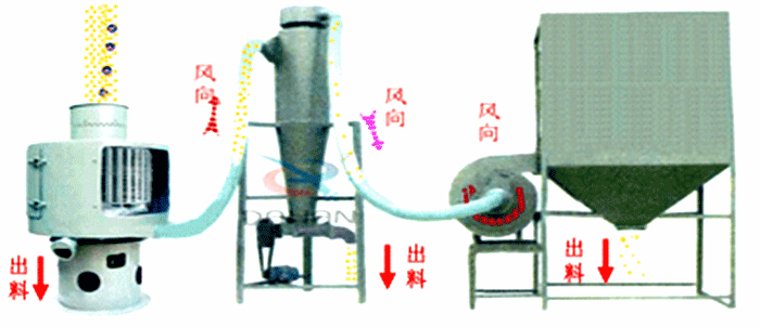 氣流篩是一種對(duì)微細(xì)粉進(jìn)行有網(wǎng)篩分的高精度篩分設(shè)備,其摒棄了傳統(tǒng)重力勢(shì)能作業(yè)的原理,采用空氣作載體,動(dòng)能作功的作業(yè)原理,通過負(fù)壓氣流將物料與空氣混合后,進(jìn)入篩機(jī)風(fēng)輪中間,通過風(fēng)輪葉片施加足夠的離心力,向桶型篩網(wǎng)噴射過網(wǎng),經(jīng)過蝸殼收集,超徑物料不能過網(wǎng),由自動(dòng)排渣口排出,從而達(dá)到快速篩分的目的。通過大量實(shí)驗(yàn)得出,對(duì)于螢石粉的篩分,氣流篩篩分效果為顯著。