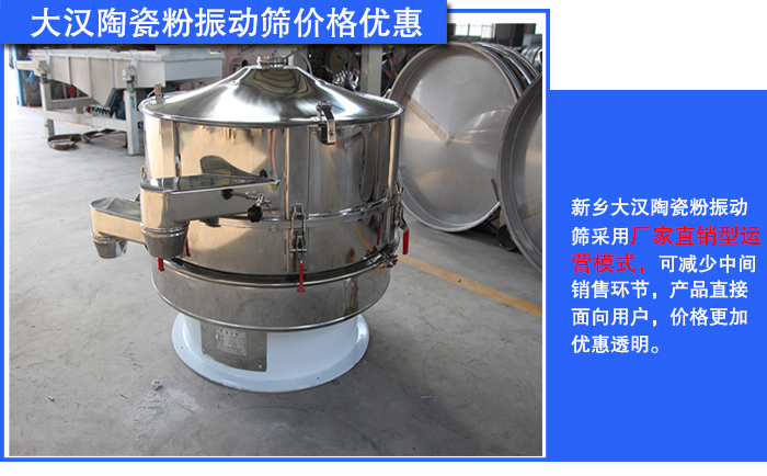 新鄉(xiāng)大漢陶瓷粉振動(dòng)篩采用廠家直銷型運(yùn)營模式,可減少中間銷售環(huán)節(jié),產(chǎn)品直接面向用戶,價(jià)格更加優(yōu)惠透明。