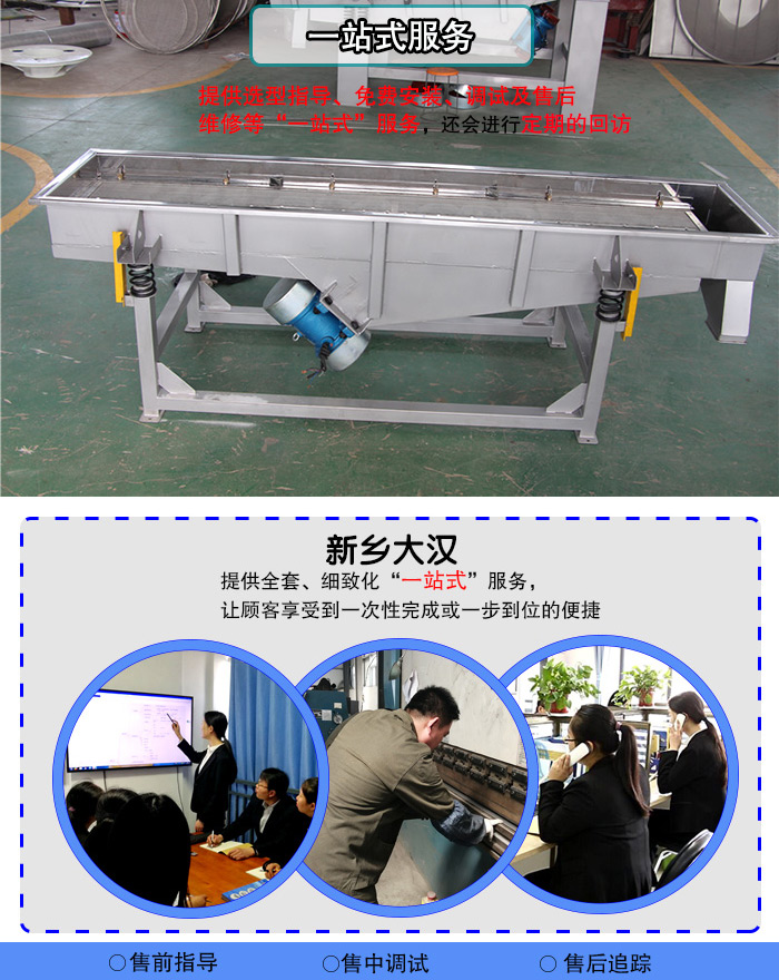 新鄉(xiāng)大漢始終以客戶服務(wù)為中心,不斷完善用戶的體驗(yàn)過程,提供選型指導(dǎo)、免費(fèi)安裝、調(diào)試及售后維修等“一站式”服務(wù),還會進(jìn)行定期的回訪。