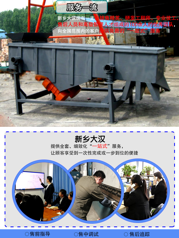 新鄉(xiāng)大漢現(xiàn)有一支由銷(xiāo)售精英、研發(fā)工程師、專(zhuān)業(yè)技工、售后人員和管理人才組成的近百人的團(tuán)隊(duì),向全國(guó)范圍內(nèi)的客戶(hù)提供免費(fèi)的“一站式”服務(wù),從選型、試機(jī)、安裝、調(diào)試、維修到定期回訪等每一個(gè)服務(wù)環(huán)節(jié)都盡可能地貼近客戶(hù),為用戶(hù)提供高質(zhì)量、可靠、快捷以及連續(xù)的服務(wù)。