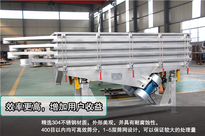 大漢不銹鋼直線振動篩精選304不銹鋼材質,外形美觀,并具有耐腐蝕性,400目以內均可高效篩分,1~5層篩網(wǎng)設計,可以保證較大的處理量,篩分效率更高,可大大增加用戶的收益。新鄉(xiāng)大漢保證冉讓您以優(yōu)惠的價格購得更高效率的產(chǎn)品。
