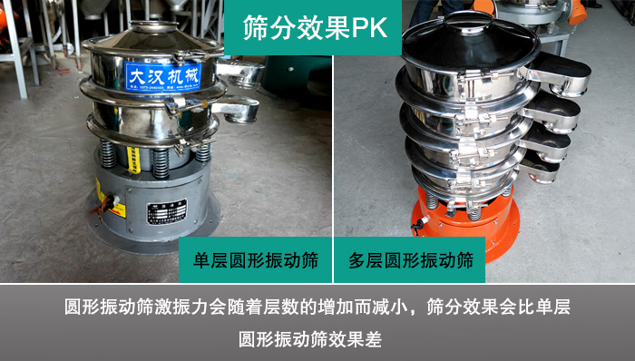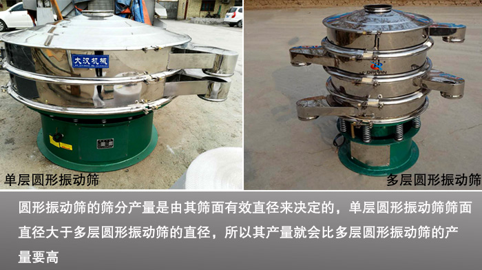 圓形振動篩為一種高精度細粉篩分設備,有單層或多層之分,高還可達到5層,但是單層圓形振動篩與多層圓形振動篩到底有哪些區(qū)別呢?