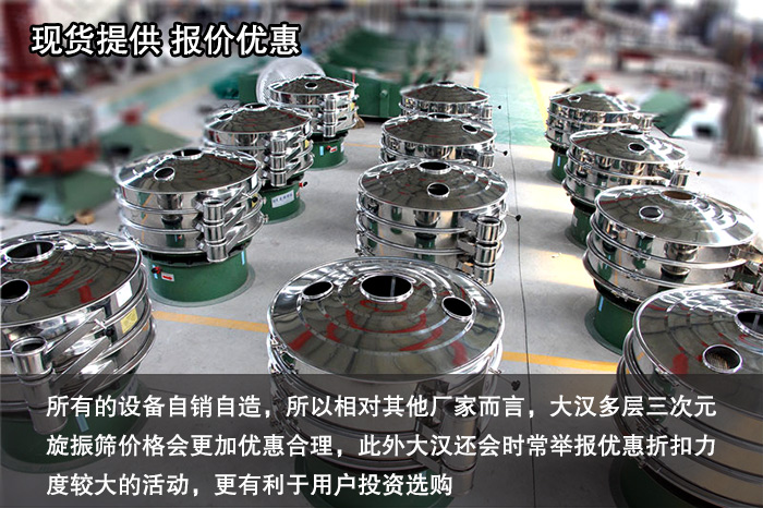 大漢是屬于直銷型的廠家,所有的設(shè)備自銷自造,所以相對(duì)其他廠家而言,大漢多層三次元旋振篩價(jià)格會(huì)更加優(yōu)惠合理,此外大漢還會(huì)時(shí)常舉報(bào)優(yōu)惠折扣力度較大的活動(dòng),更有利于用戶投資選購(gòu)。