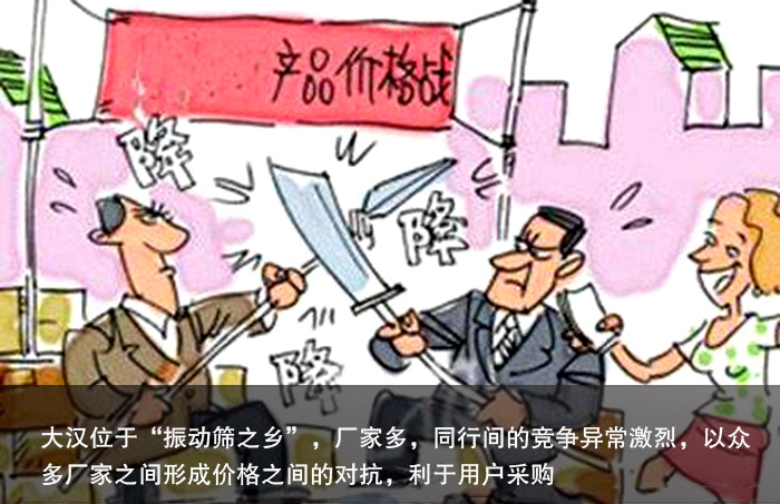 新鄉(xiāng)位于著名的“振動(dòng)篩之鄉(xiāng)”,所以振動(dòng)篩設(shè)備的廠家分布較多,同行間的競(jìng)爭(zhēng)異常激烈,廠家為搶占市場(chǎng)份額,會(huì)適當(dāng)下調(diào)價(jià)格來(lái)吸引用戶(hù),所以眾多廠家之間形成價(jià)格之間的對(duì)抗,這對(duì)于我們的用戶(hù)來(lái)說(shuō)是非常有利的。
