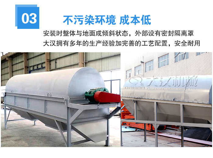 該滾筒篩篩沙機(jī)安裝時整體與地面成傾斜狀態(tài),外部設(shè)有密封隔離罩,在篩沙時,不會對環(huán)境造成污染。由于大漢擁有多年的生產(chǎn)經(jīng)驗的工藝配置,用戶在使用過程中安全耐用,故障率極低,所以節(jié)約了成本,提高了經(jīng)濟(jì)效益。
