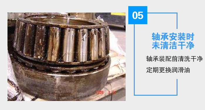 解決方法:軸承裝配前清洗干凈,另外在使用中需要定期更換潤滑油,換潤滑油在設(shè)備使用150h之后,之后每運(yùn)行1000h都需要更換一次。