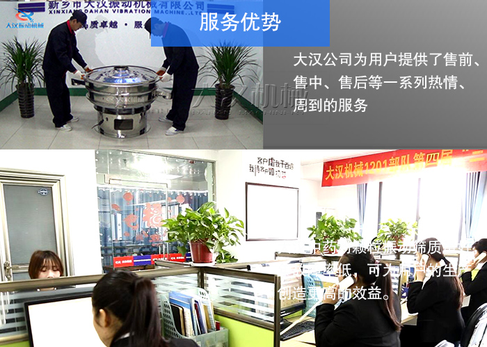 大漢公司不但為用戶提供質(zhì)量過硬、性能穩(wěn)定的設(shè)備,而且還為用戶提供了售前、售中、售后等一系列熱情、周到的服務(wù),可及時(shí)有效解決用戶生產(chǎn)遇到的難題,降低中西藥顆粒振動(dòng)篩在作業(yè)中的停機(jī)時(shí)間,使用戶的生產(chǎn)更加的安全、連續(xù)、高效。