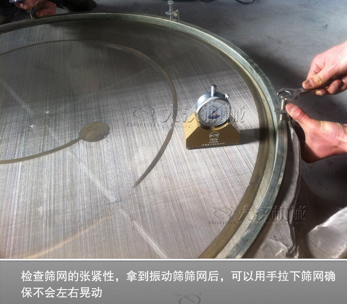 4、檢查篩網的張緊性,拿到振動篩篩網后,可以用手拉下篩網確保不會左右晃動,這樣說明振動篩篩網的經緯編織力度一樣,篩分過程中篩面的平整度、度、抗破損性都比較高。