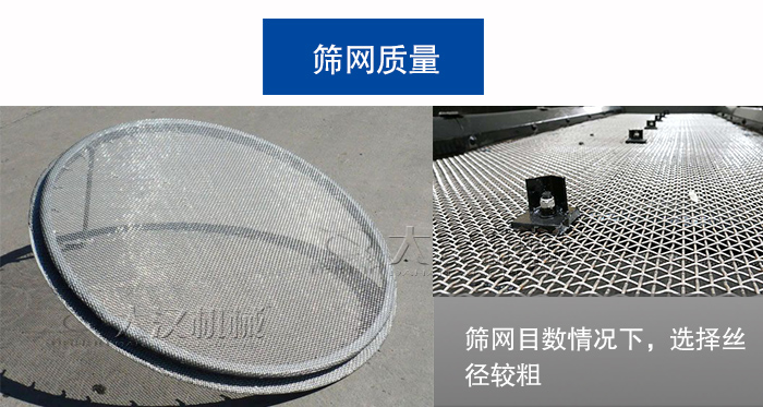 一般來說,為了保證大網目振動篩篩網的耐用性,我們在圓形振動篩上多使用一種叫“子母式”的網架結構,即由上面的承擔篩分工作的母網和下面用于承托母網的粗絲徑子網構成,因此我們需要的是確定母網的目數和絲徑.