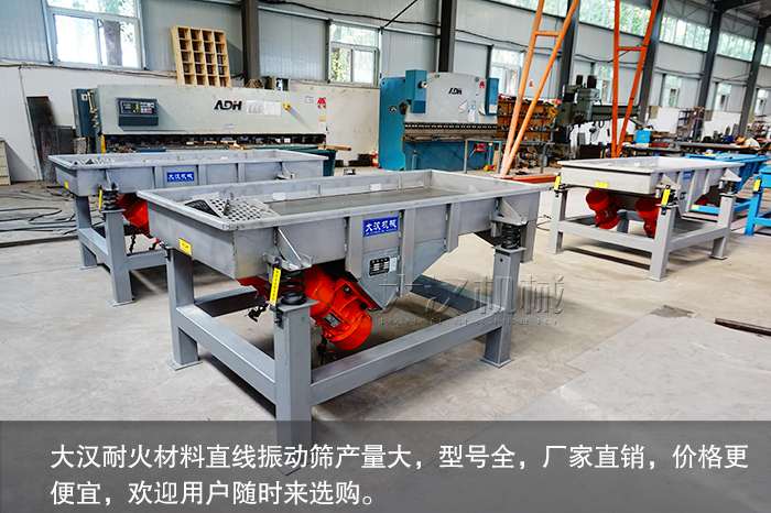 耐火材料應(yīng)用于鋼鐵、有色金屬、鍋爐、輕工、電力、軍工等國(guó)民經(jīng)濟(jì)的各個(gè)領(lǐng)域,耐火材料在生產(chǎn)中需要用到振動(dòng)篩,關(guān)于耐火材料選擇哪種振動(dòng)篩合適,大漢廠家為您推薦直線振動(dòng)篩。
