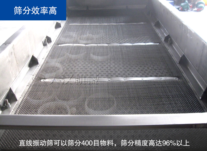 直線振動(dòng)篩可以篩分400目物料,篩分精度高達(dá)96%以上,采用全密閉結(jié)構(gòu),可保證耐火材料在篩分過程中不會(huì)出現(xiàn)粉塵溢散現(xiàn)象,可以進(jìn)一步提高直線振動(dòng)篩篩分效率。