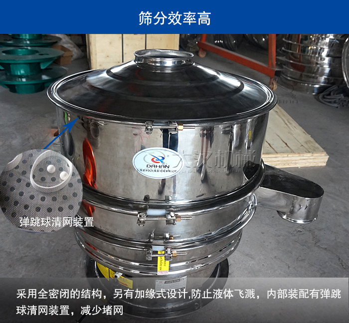 香油除雜過濾過程中易出現(xiàn)飛濺現(xiàn)象,不銹鋼振動(dòng)篩采用全密閉的結(jié)構(gòu),另有加緣式設(shè)計(jì),可以保證香油在篩分過程中不會(huì)出現(xiàn)液體飛濺等現(xiàn)象,而且大漢不銹鋼振動(dòng)篩篩機(jī)內(nèi)部裝配有彈跳球清網(wǎng)裝置,可以在篩機(jī)工作時(shí)對(duì)篩面進(jìn)行清潔處理,減少篩分過程中出現(xiàn)的堵網(wǎng)問題,進(jìn)一步提高不銹鋼振動(dòng)篩的篩分效率。