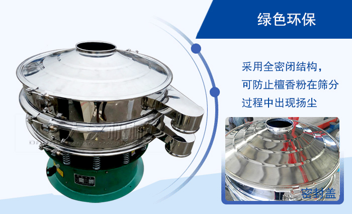 旋振篩采用全密閉結(jié)構(gòu),可防止檀香粉在篩分過程中出現(xiàn)揚(yáng)塵等現(xiàn)象,降低了對(duì)環(huán)境的污染。