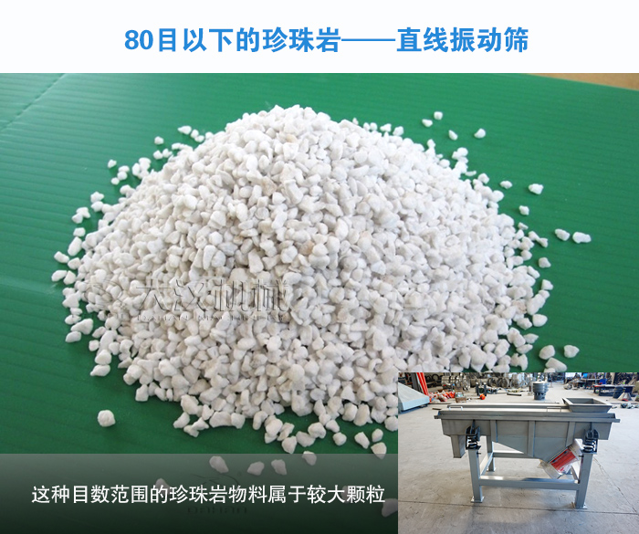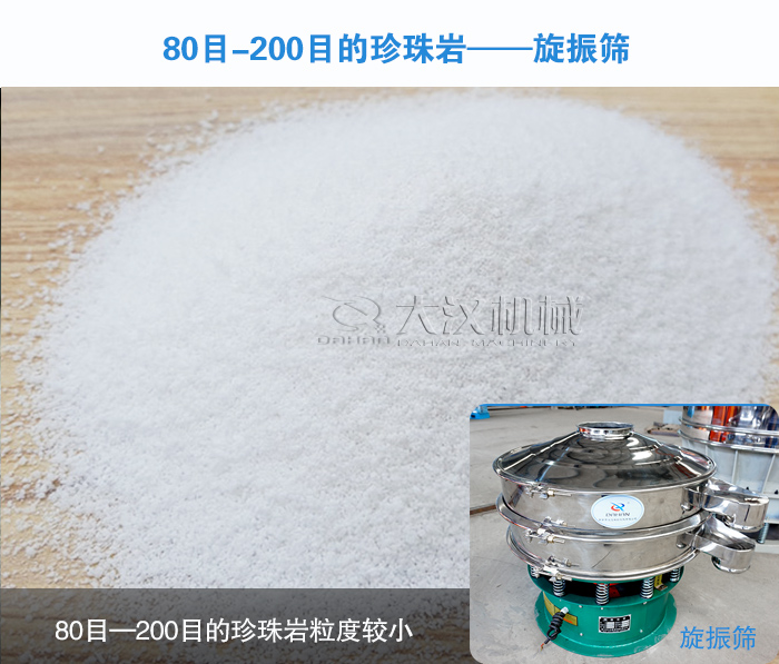 見的篩分目數(shù)有20目,30目,50目,70目,80目,120目,200目,所以針對不同粒度規(guī)格的珍珠巖使用的振動篩也是不同的。