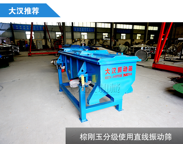 棕剛玉主要是用在耐火材料,砂輪,噴砂中,棕剛玉分級離不開振動篩設(shè)備,那么棕剛玉分級使用哪種振動篩呢?大漢廠家在這里建議您使用直線振動篩,主要原因如下: