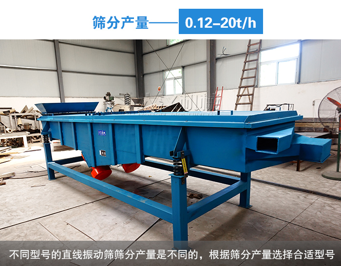 不同型號(hào)的直線振動(dòng)篩篩分產(chǎn)量是不同的,用戶可以根據(jù)篩分產(chǎn)量的大小選擇合適層數(shù)的石粉直線篩,大漢直線振動(dòng)篩可以自動(dòng)化排料,產(chǎn)量可以達(dá)到0.12~20t/h,在對(duì)石粉進(jìn)行批量化生產(chǎn)時(shí)很是實(shí)用。