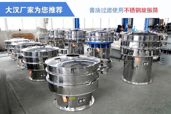 醬油是食品行業(yè)的一種調(diào)味品,在其生產(chǎn)過程中需要使用振動篩對其進行過濾除雜,那么醬油過濾使用哪種振動篩呢?大漢廠家為您推薦我們的不銹鋼旋振篩。