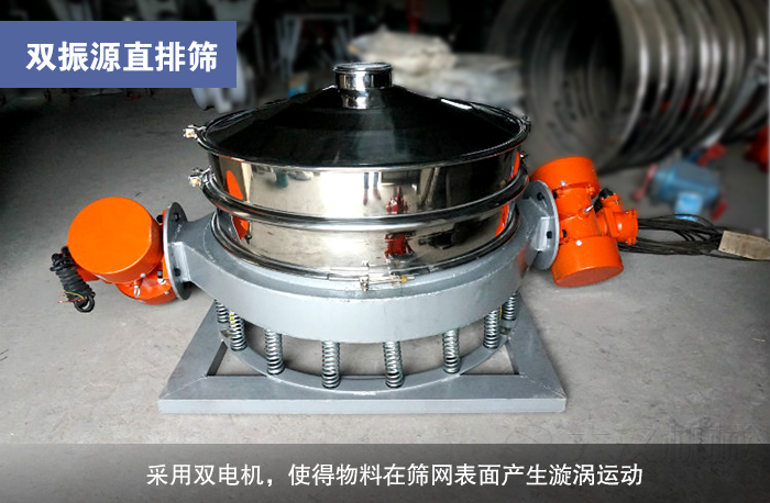 該種類型的直排式主要采用雙電機(jī),使得物料在篩網(wǎng)表面產(chǎn)生漩渦運(yùn)動(dòng),有自動(dòng)排料功能;