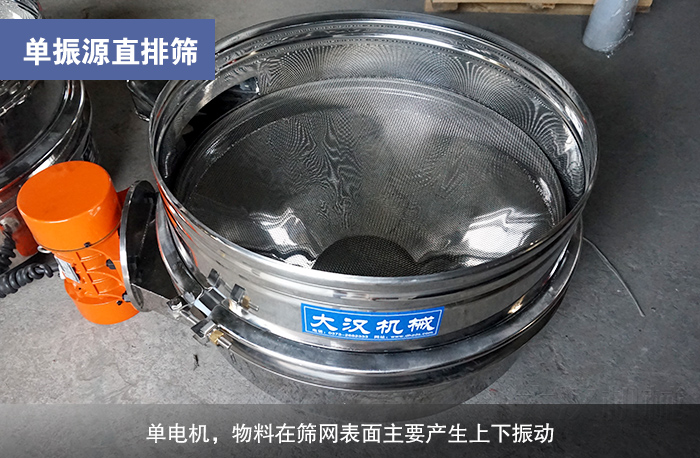 這種類型的直排篩為單電機(jī),物料在篩網(wǎng)表面主要產(chǎn)生上下振動(dòng),無自動(dòng)排料功能。