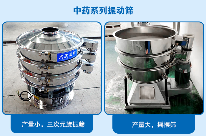 由于中藥行業(yè)中物料多為粉末狀和液體狀,所以為提高中藥粉或藥液的質(zhì)量度會(huì)需要篩分設(shè)備對(duì)其進(jìn)行篩選或除雜。