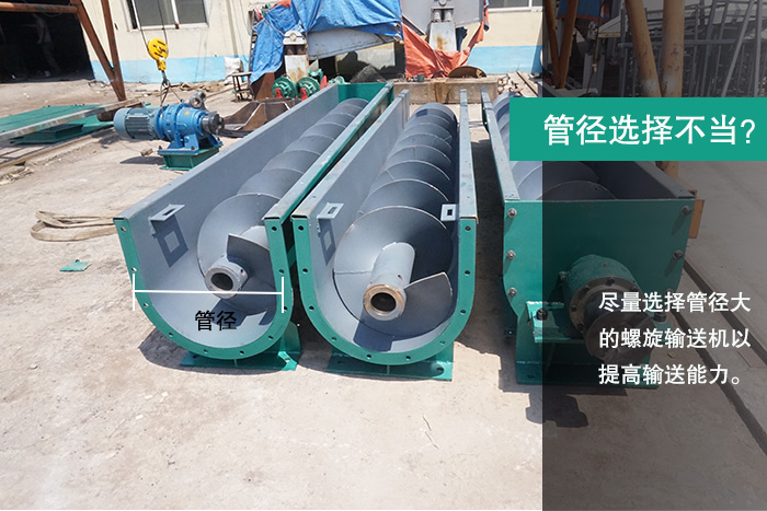 螺旋輸送機管徑的大小也同樣影響著其輸送能力。在同等條件下,螺旋管直徑較大的輸送機,它的輸送量及輸送能力會比管徑小的要高。