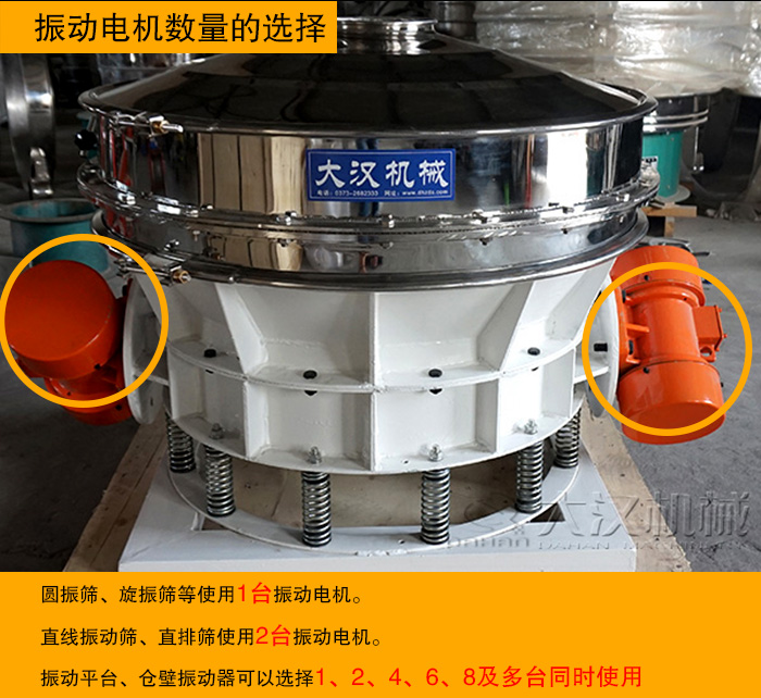 圓振篩、旋振篩等使用1臺振動電機(jī)。