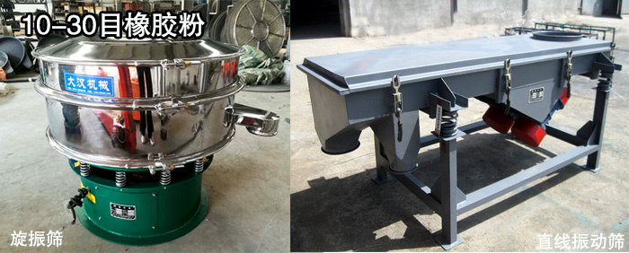 10-30目橡膠粉在制備過程中無需進入磨粉設備,只需經(jīng)過粉碎、破碎即可得到,因此該粒徑的橡膠粉呈小顆粒狀而非絮狀,透篩率良好,因此建議使用旋振篩或直線篩即可。