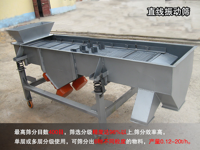 直線振動篩運用雙振動電機驅動,高篩分目數(shù)400目,篩選分級精度達96%以上,篩分效率高,單層或多層分級使用,可篩分出6種不同粒度的物料,自動化排料,處理量0.12-20t/h。